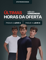 Escolha o kit, defina as cores e tamanho, e no carrinho de compra irá desbloquear a oferta Pague 2, Leve 3.